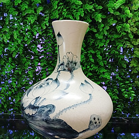 Lọ Lộc Bình Men Rạn Đắp Nổi được làm thủ công bởi bàn tay nghệ sĩ của những nghệ nhân làng gốm Bát Tràng Kích thước :Chiều cao 42cm Phù hợp với những ban thờ