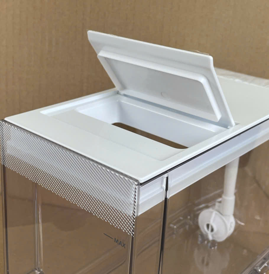 Bình chứa nước sử dụng cho tủ lạnh Electrolux 4 cánh EQE5660A-B Hàng mới 100% - Hàng chính hãng Dung tích: Min 0.5L – Max 3.5L Bình chứa nước gồm 3 bộ phận như sau: