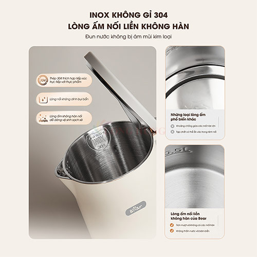 Đặc điểm nổi bật Công suất 2000 W cùng dung tích 2 L Hiệu quả đun sôi mạnh mẽ, đủ nước cho cả gia đình Vỏ bình bằng nhựa, ruột bằng chất liệu Inox cao