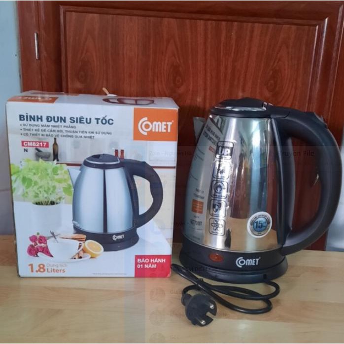 THÔNG TIN KỸ THUẬT: 1.Thương hiệu : Comet 2.Sản phẩm : Bình đun siêu tốc 3.Mã sản phẩm : CM8226 4.Điện áp : 220V - 50Hz 5.Công suất: 1500W 6.Dung tích: 1.8L 7.Kích thước :