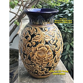 Bình hoa Bát Tràng cao cấp, hàng chuẩn loại 1 với kiểu dáng đùi ếch (phần đáy bình nhỏ, phình to ở phần trên và miệng bình) phối với họa tiết hoa đắp nổi cầu