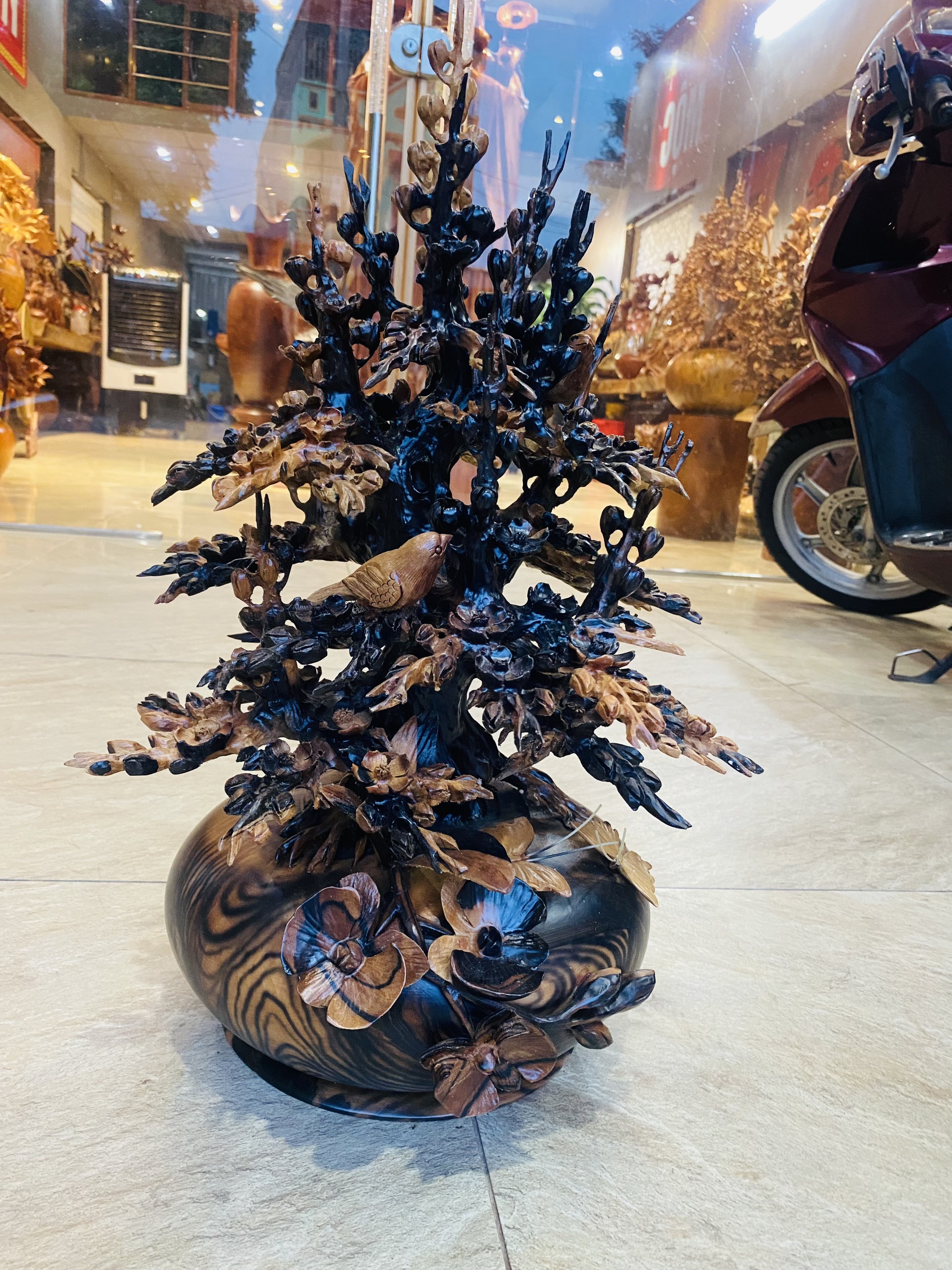 _ Bình hoa mai phú quý trang trí phong thủy được làm bằng chất liệu gỗ mun hoa tự nhiên 100% _ Kt bình cao 56×38×28cm _ Bình hoa mai lan được điêu khắc trạm