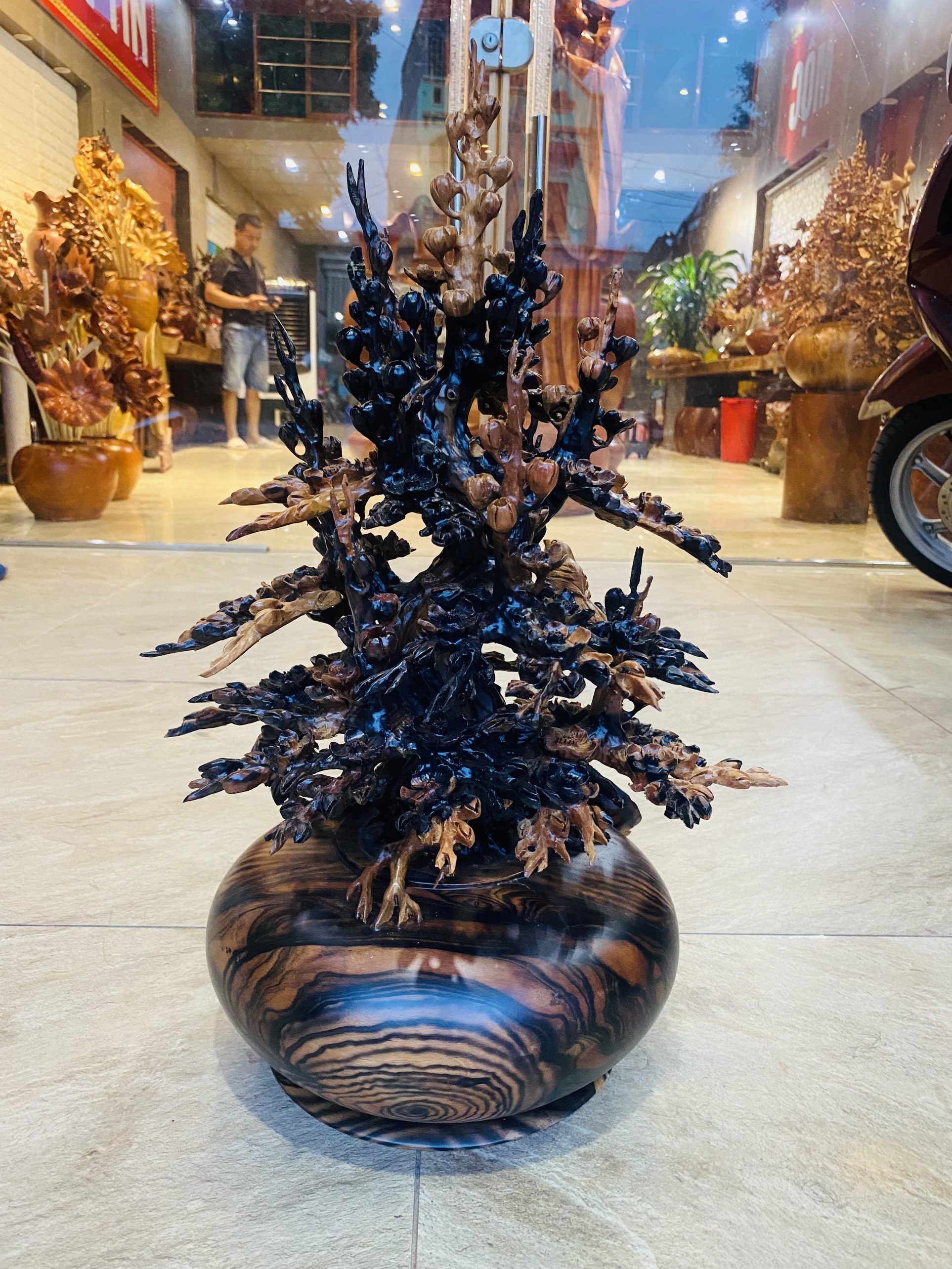 _ Bình hoa mai phú quý trang trí phong thủy được làm bằng chất liệu gỗ mun hoa tự nhiên 100%