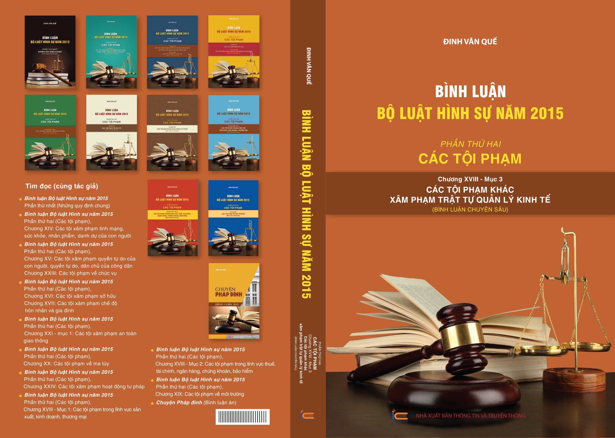 Bình luận Bộ luật Hình sự năm 2015 (Phần thứ hai - Các tội phạm), Chương XVIII, Mục 3: Các tội pham khác xâm pham trật tự quản lý kinh tếTác giả: Đinh Văn QuếNXB: Thông tin và Truyền thôngCông ty phá...