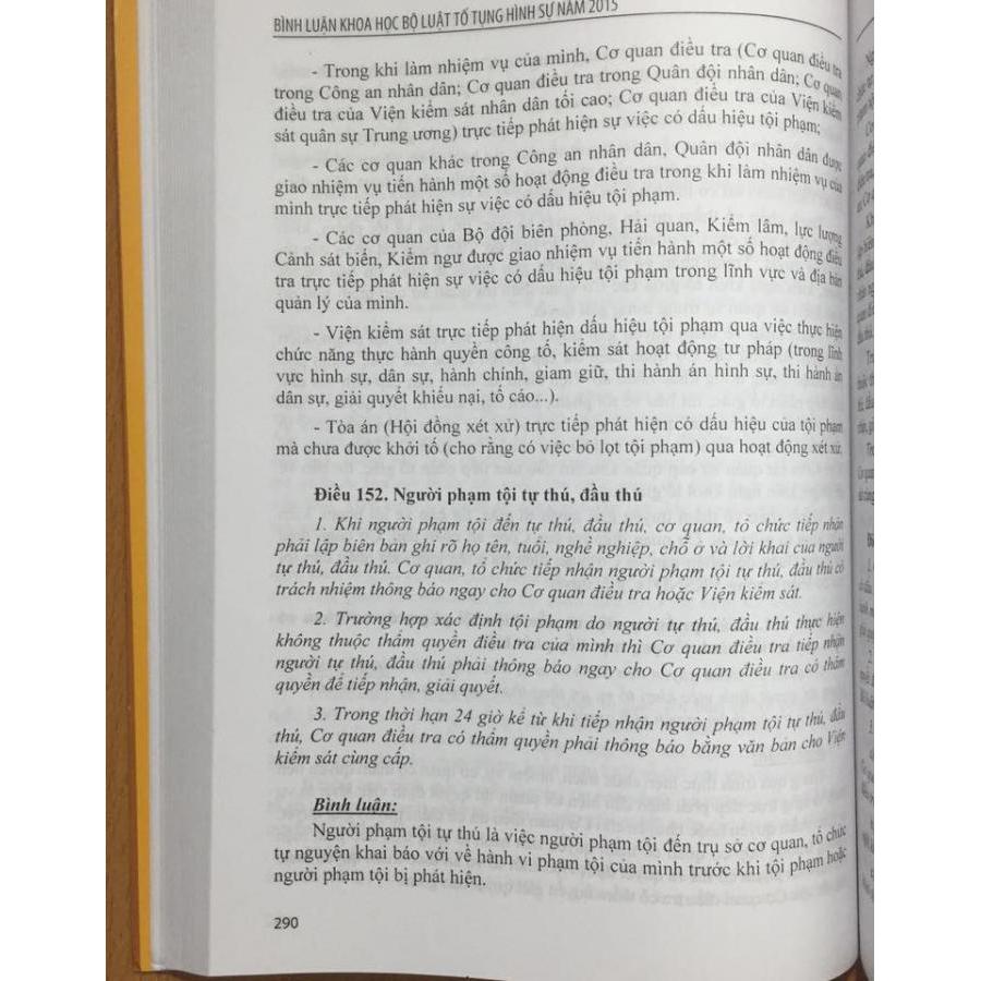 Bình Luận Khoa Học Bộ Luật Tố Tụng Hình Sự Năm 2015 (Tái Bản) Bộ luật tố tụng hình sự 2015 được Quốc hội thông qua ngày 27-11-2015, có hiệu lực từ ngày 1-1-2018. Việc