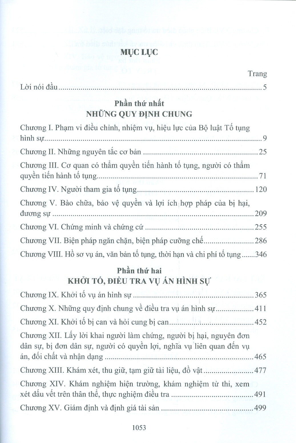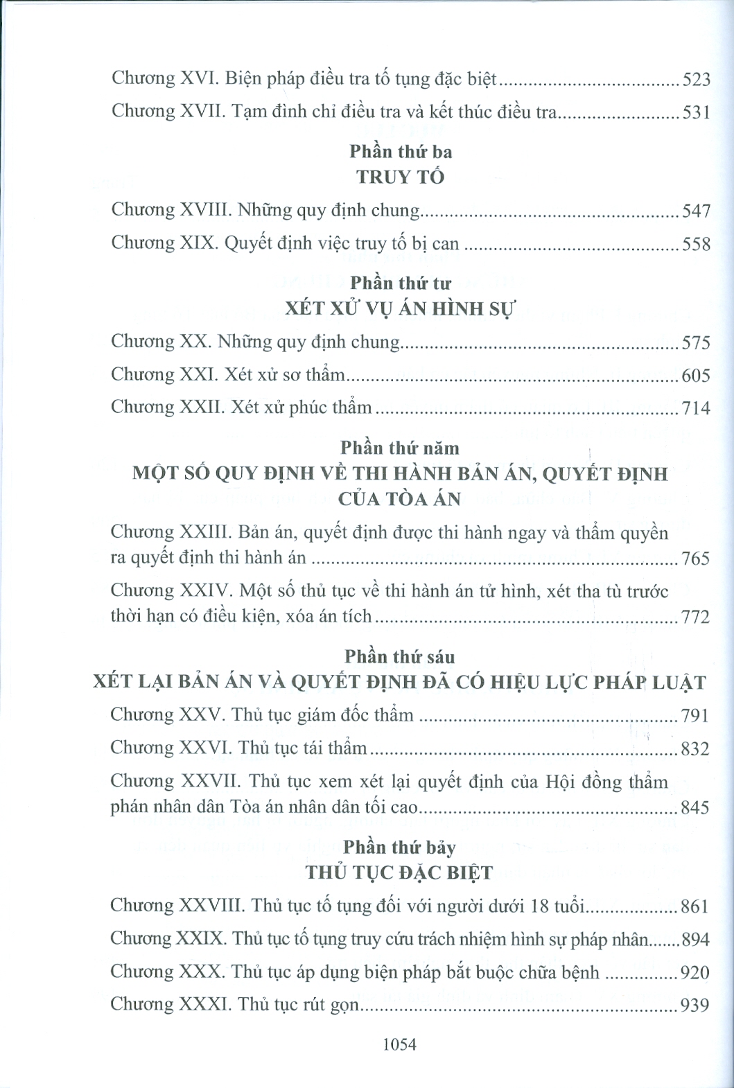 Cuốn sách gồm 9 phần, 510 điều, quy định trình tự, thủ tục tiếp nhận, giải quyết nguồn tin về tội phạm, khởi tố, điều tra, truy tố, xét xử và một số thủ tục