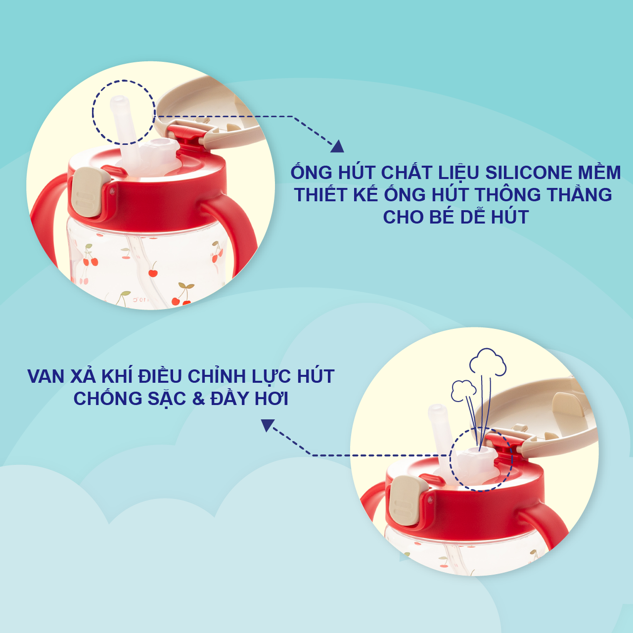 Bình ống hút Axstars Richell giúp con chăm uống nước hơn bao giờ hết, chống sặc, chống rò rỉ nước