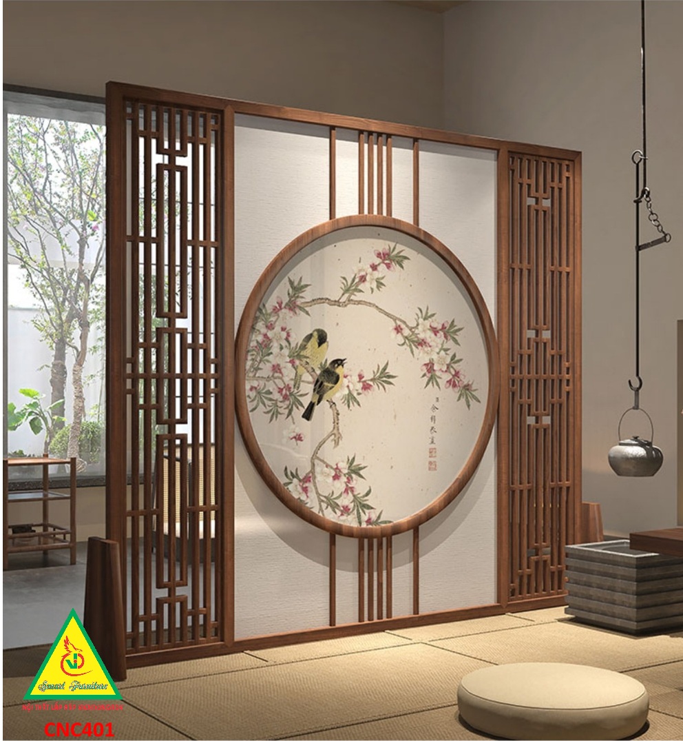 ✨Bình phong gỗ khung tranh cắt CNC cho phòng khách, nhà bếp, nhà hàng, spa CNC401 - Nội thất lắp ráp Viendong Adv
