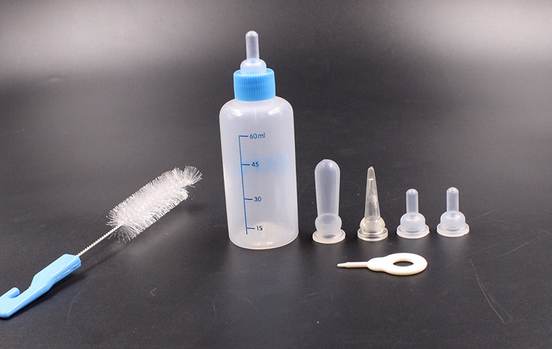- Soft, environmentally friendly, non-toxic nipples, safe for pets. Specification: Material: Silicone Capacity: 60ml and 150ml Color: Random Package List: 1 x Bottle, 1 x Brush, 1 x Punching Needle, 4 x Nipple