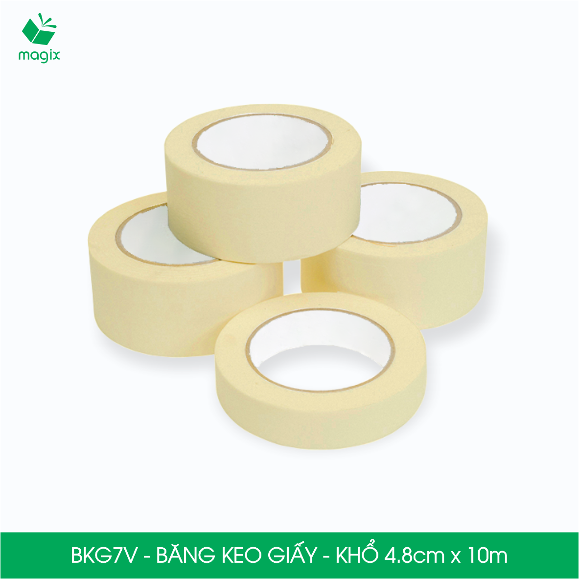 "Băng keo giấy là loại băng dính che phủ đa dụng với chất keo gốc cao su tự nhiên có độ dính vừa phải. Với đặc tính dễ sử dụng, dễ viết và không để lại vết keo khi bóc ra, băng keo giấy thường được sử dụng để dán tạm thời, đóng gói nhẹ hoặc dùng trong các hoạt động thủ công, là sản phẩm đa năng và tiện lợi dùng tại văn phòng, nhà riêng hoặc trường học.