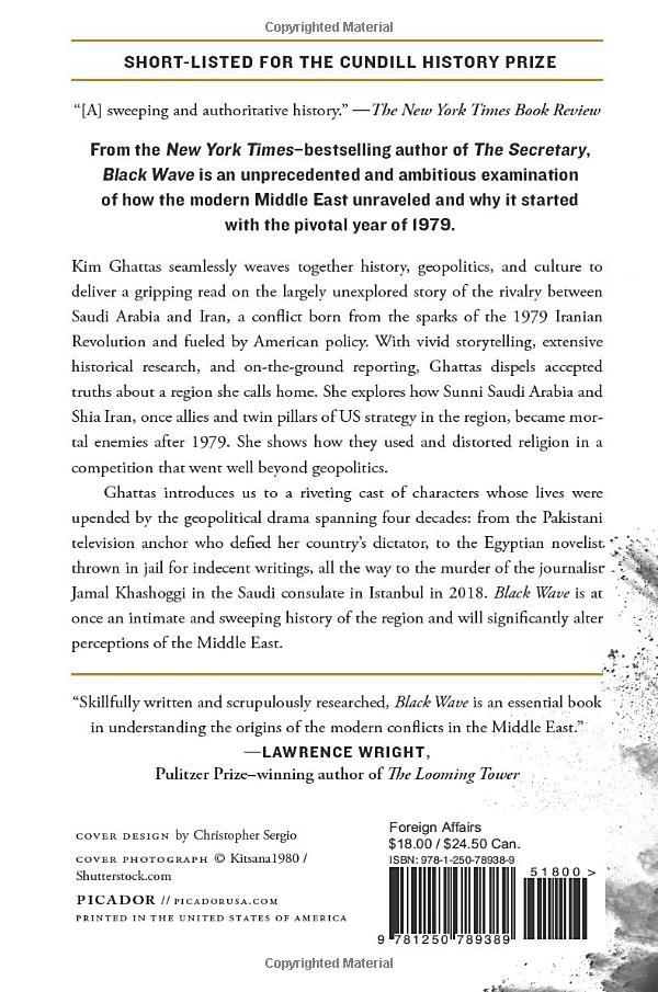 Ghattas introduces us to a riveting cast of characters whose lives were upended by the geopolitical drama over four decades: from the Pakistani television anchor who defied her country’s dictator, to the Egyptian novelist thrown in jail for indecent writings all the way to the murder of journalist Jamal Khashoggi in the Saudi consulate in Istanbul in 2018. Black Wave is both an intimate and sweeping history of the region and will significantly alter perceptions of the Middle East.