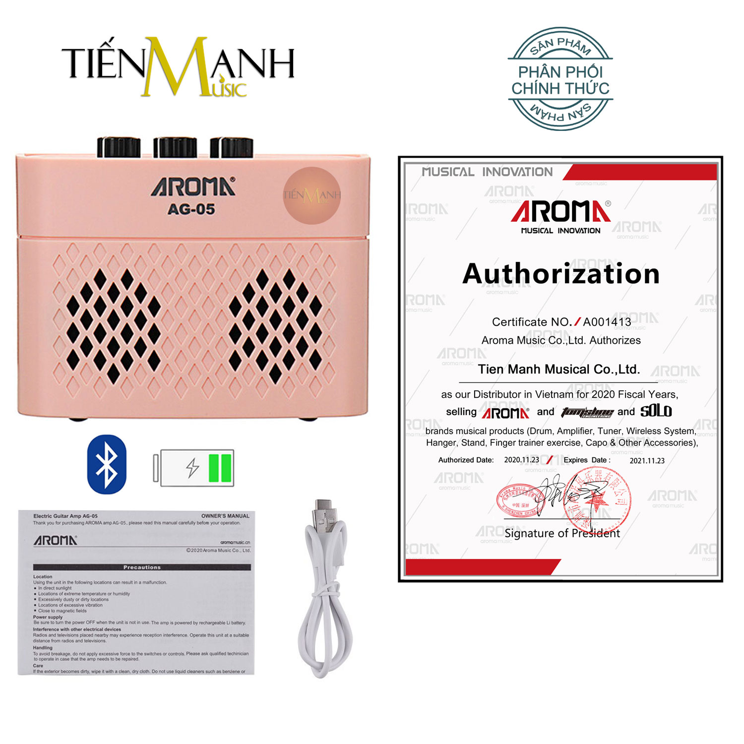 ✨[Bluetooth, Pin sạc] Amply Aroma Mini AG-05 - Loa Ampli Guitar AG05 Amplifier AG5 Hàng Chính Hãng - Kèm Móng Gẩy DreamMaker