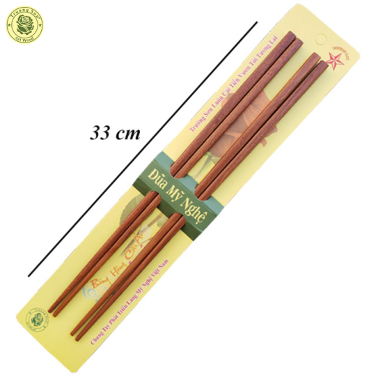 THÔNG TIN SẢN PHẨM Tên sản phẩm: Đũa Gỗ Cẩm Hồng - thương hiệu Trường Sơn Kích thước đũa: 24 +/- 0.5 cm Số lượng: 05 Đôi / Vỉ Trọng lượng:100 gram MÔ TẢ SẢN