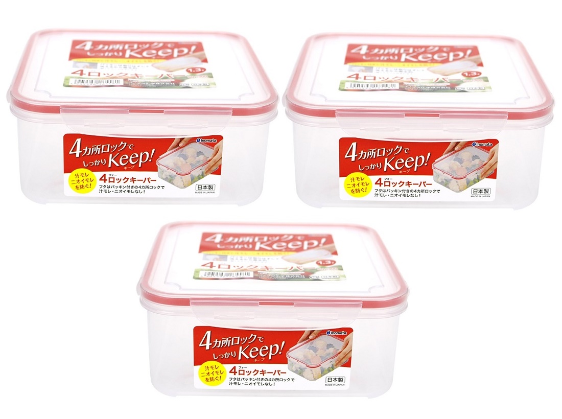 Bộ 03 hộp thực phẩm Vuông inomata 1300ml hàng nội địa Nhật Bản Mã sản phẩm: No.1855# Dung tích: 1300ml ~ kích thước: 17.5 x 17.5 x 7Hcm Chất liệu nhựa PP cao cấp, kết hợp