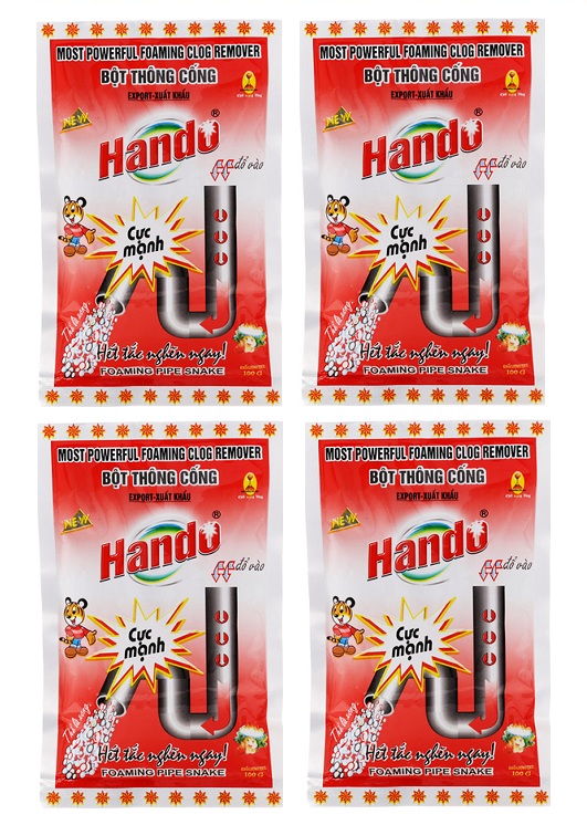 - Bột thông cống Hando 100g xuất khẩu với công thức tiên tiến, các thành phần hóa học chuyên dụng, độ tẩy cực mạnh sẽ xoáy tan mọi cặn bẩn trong đường ống một cách hiệu quả.