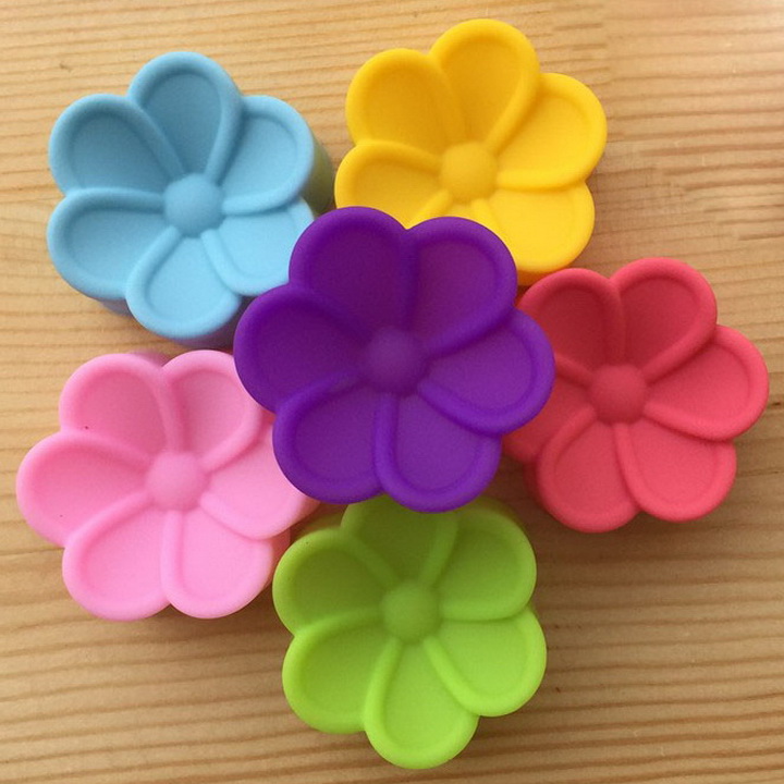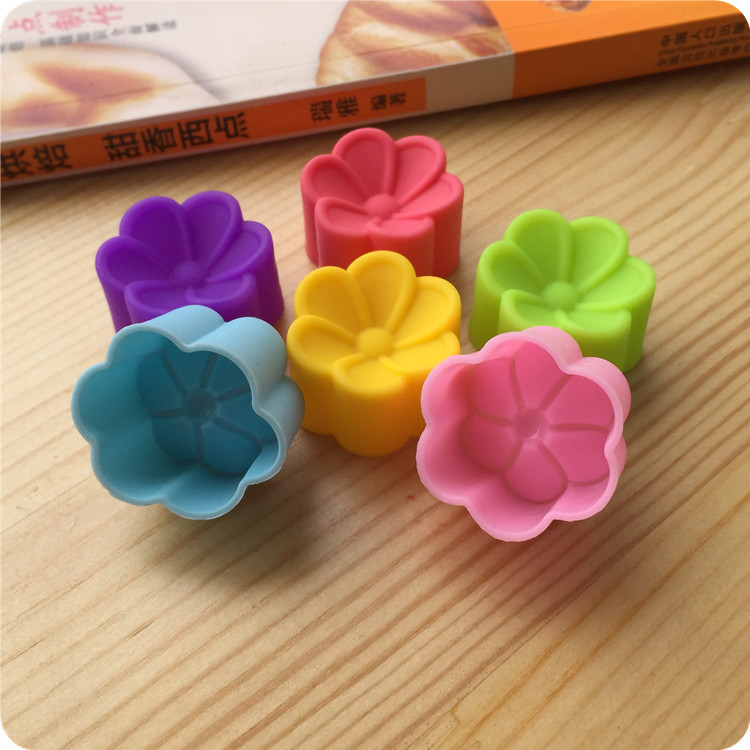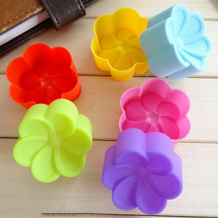 Bộ 10 khuôn silicon 3 lớp làm bánh, rau câu, bánh bông lan, bánh da lợn hình hoa mai 5 cánh tròn – Mã số 1100