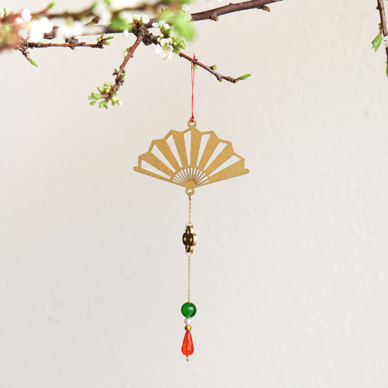 Bộ 05 phụ kiện dây treo Nguyệt hoa đăng đỏ, nổi bật với chất liệu gỗ khắc CNC, điểm xuyến bởi các hạt đỏ. Dây treo được làm thủ công sắc sảo. Là điểm nhấn