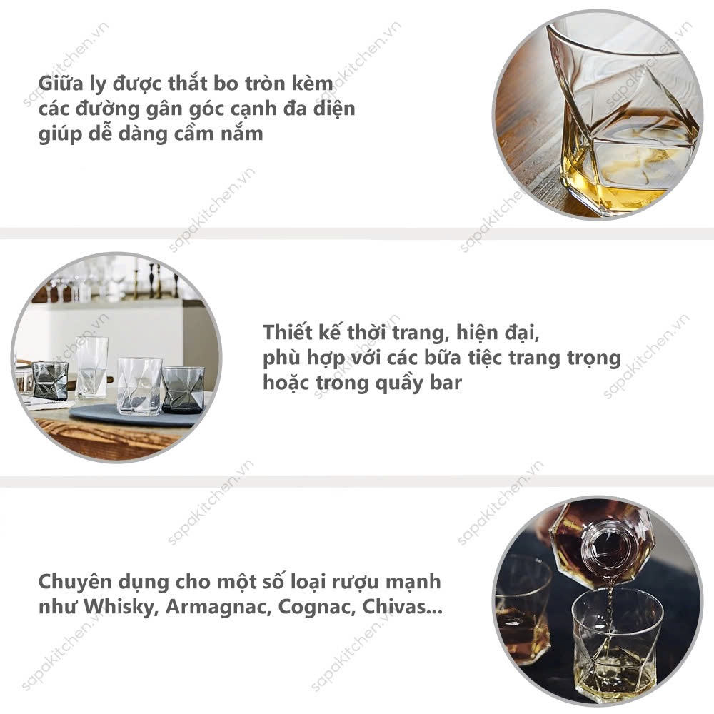 Ly uống rượu mạnh với dung tích 32CL màu thủy tinh trong suốt, mỗi lần rót chỉ khoảng 1/3 ly loại rượu này thường được dùng sau bữa ăn, nhằm tránh cho người uống cảm giác bị shock. Chất liệu làm bằng thủy tinh với độ bền cao, siêu nhẹ, khả năng chống nứt vỡ sứt mẻ ngay cả khi va chạm mạnh dùng được trong máy rửa chén. Ly thủy tinh uống rượu mạnh được sản xuất tại Ý trên công nghệ hiện đại kết hợp với kỹ thuật được đúc kết lâu đời. Sản phẩm dùng trong các quán bar, quầy rượu hay trang trí bàn ăn đều tiện ích.