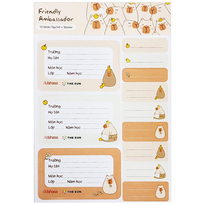 Bộ 15 Nhãn Vở Học Sinh 3 Ô Friendly Ambassador Kèm Sticker - The Sun V2 Dòng sản phẩm mới của The Sun lần đầu tiên xuất hiện tại Thương mại Điện Tử FAHASA được thiết kế hình Capybara nổi tiế...