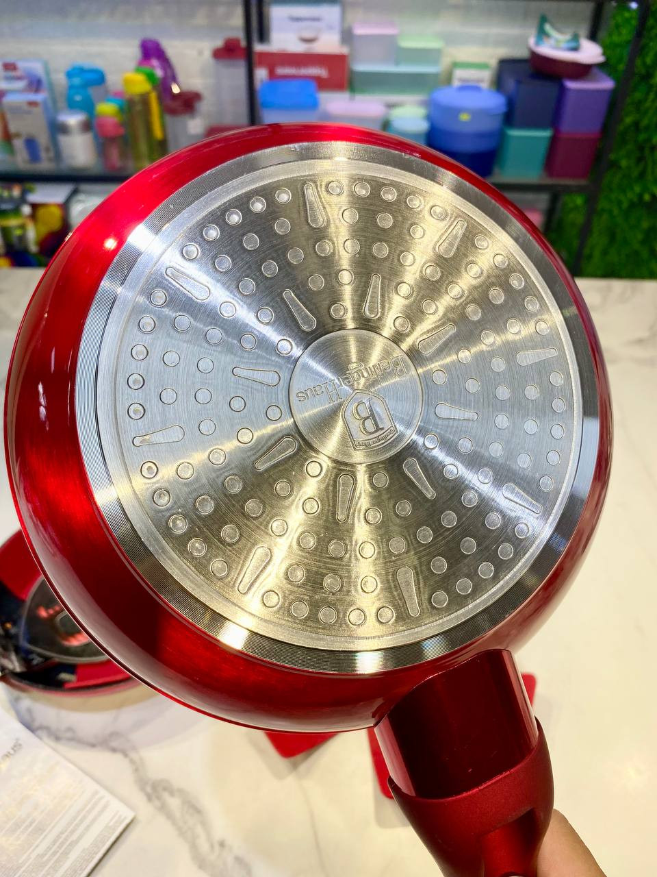 BỘ 2 CHẢO Berlinger Haus BH/1612NF - Set 22 - 26cm chống dính phủ đá màu đỏ - Metallic Line. Chất lượng vượt xa kỳ vọng, KHÔNG LO ""ĐAU VÍ"" 25 năm gắn kết niềm