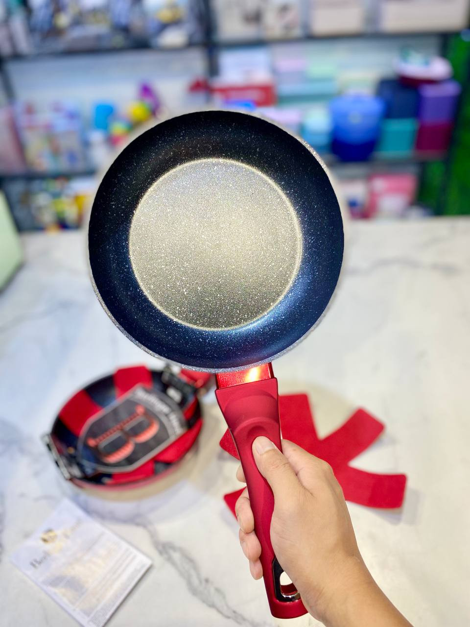 Chảo chống dính quai rời bếp từ Pháp Visions dùng được mọi bếp hàng chính hãng bảo hành 2 năm size 18-22-24-26 cm Bộ 3 món gồm : Nồi nấu 18cm x 8.8cm , Chảo
