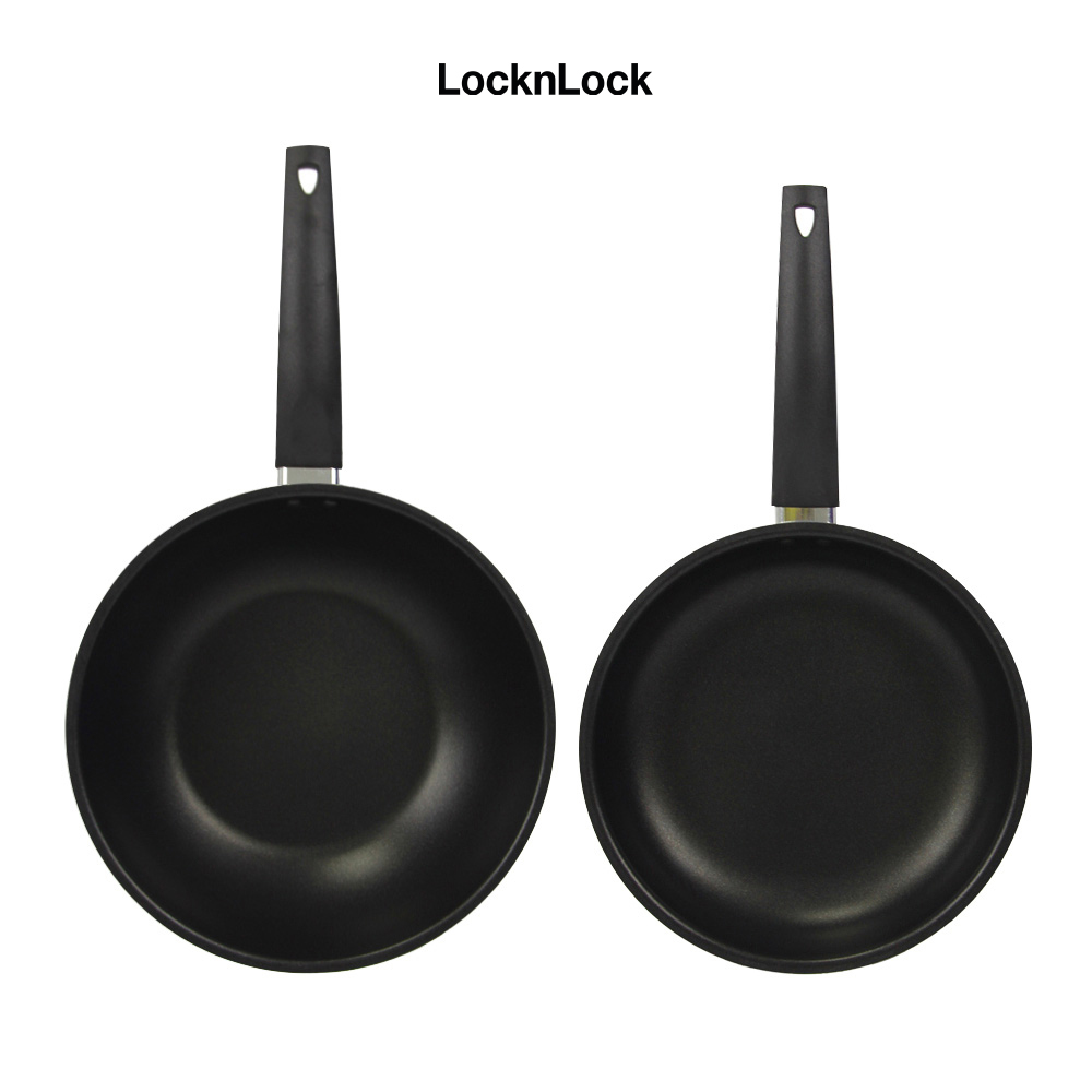 ✨Bộ 2 chảo Lock&Lock Easy Frypan 2P Set, Chảo 1 tay cầm 24cm + Chảo lòng sâu 26cm (LEY1243 x 1, LEY1265 x 1) LEY1243S2