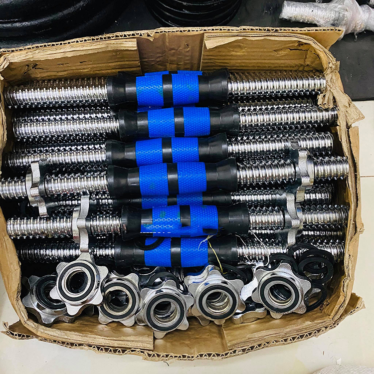 - Đòn tạ tay cao su, có 2 đầu khóa tạ chèn cao su chắc chắn, an toàn tuyệt đối trong quá trình tập luyện.