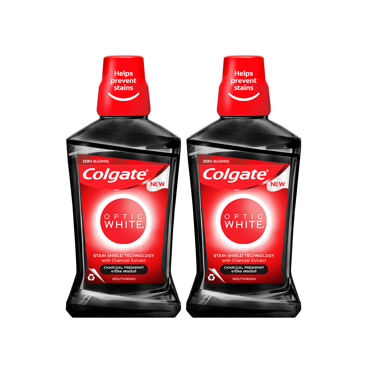 Nước súc miệng Colgate trắng răng Optic White than hoạt tính bạc hà the mát với công nghệ STAIN SHIELD