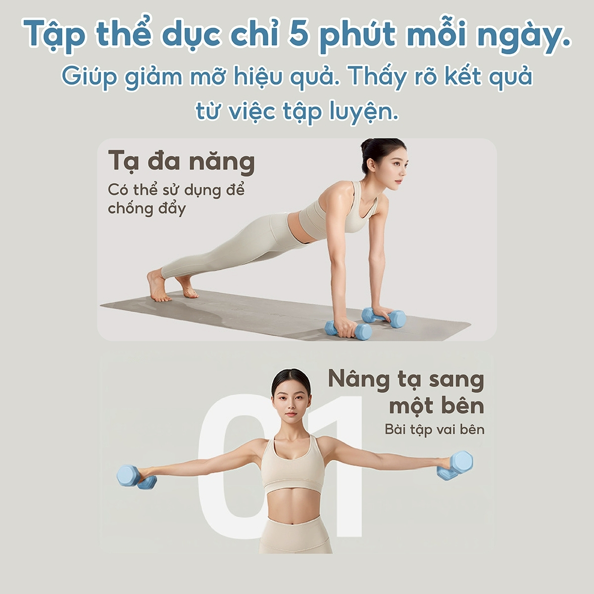 - Tạ tay nhập khẩu 2kg là dụng cụ đắc lực để bạn tập luyện dễ dàng hơn, giúp chăm sóc hiệu quả cho các khớp, cơ ở phần toàn bộ cánh tay cũng như