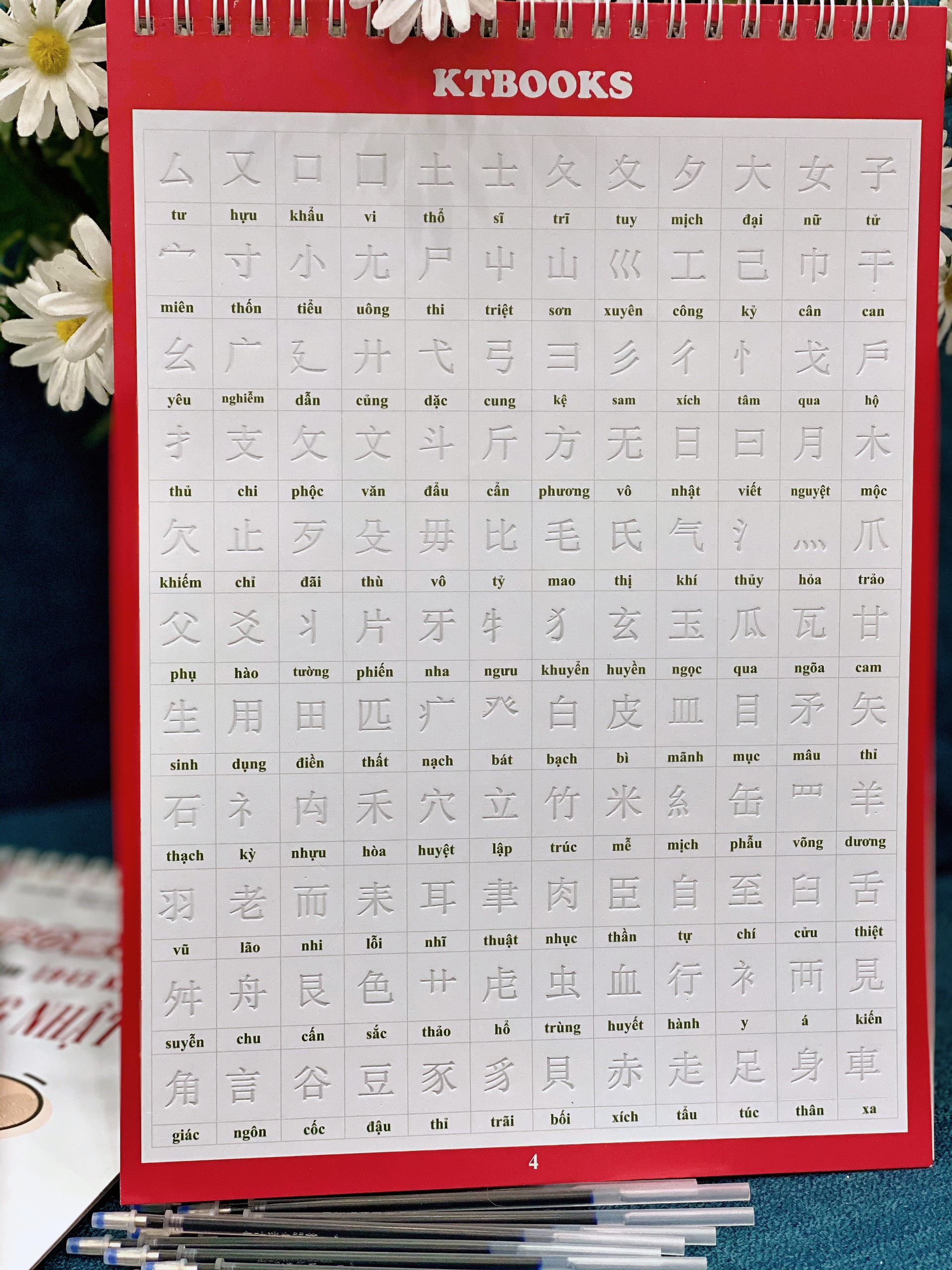 Bộ Luyện viết In chìm 1945 KANJI Tiếng Nhật và 214 Bộ thủ bao gồm: