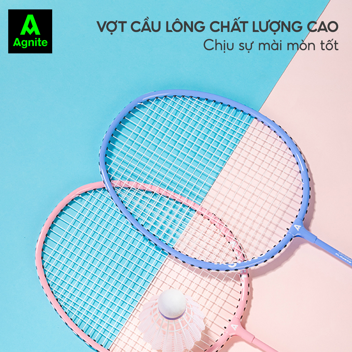 THÔNG SỐ CƠ BẢN Thương hiệu: Agnite Mã số: F2108 Số lượng: Hai chiếc Màu sắc: xanh lam + đỏ Trọng lượng vợt: 110 ± 5g Độ cứng thanh: cứng Lực căng dây: 16-18LB Chiều