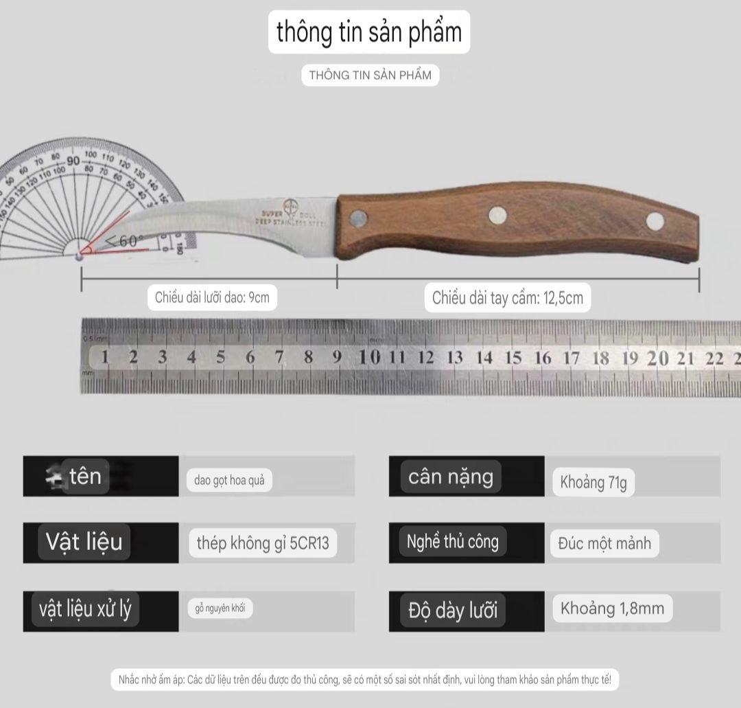 Bộ dao gồm 3 chiếc được làm bằng thép không rỉ, dài 2mm đảm bảo sáng đẹp, cán bằng gỗ chắc chắn.