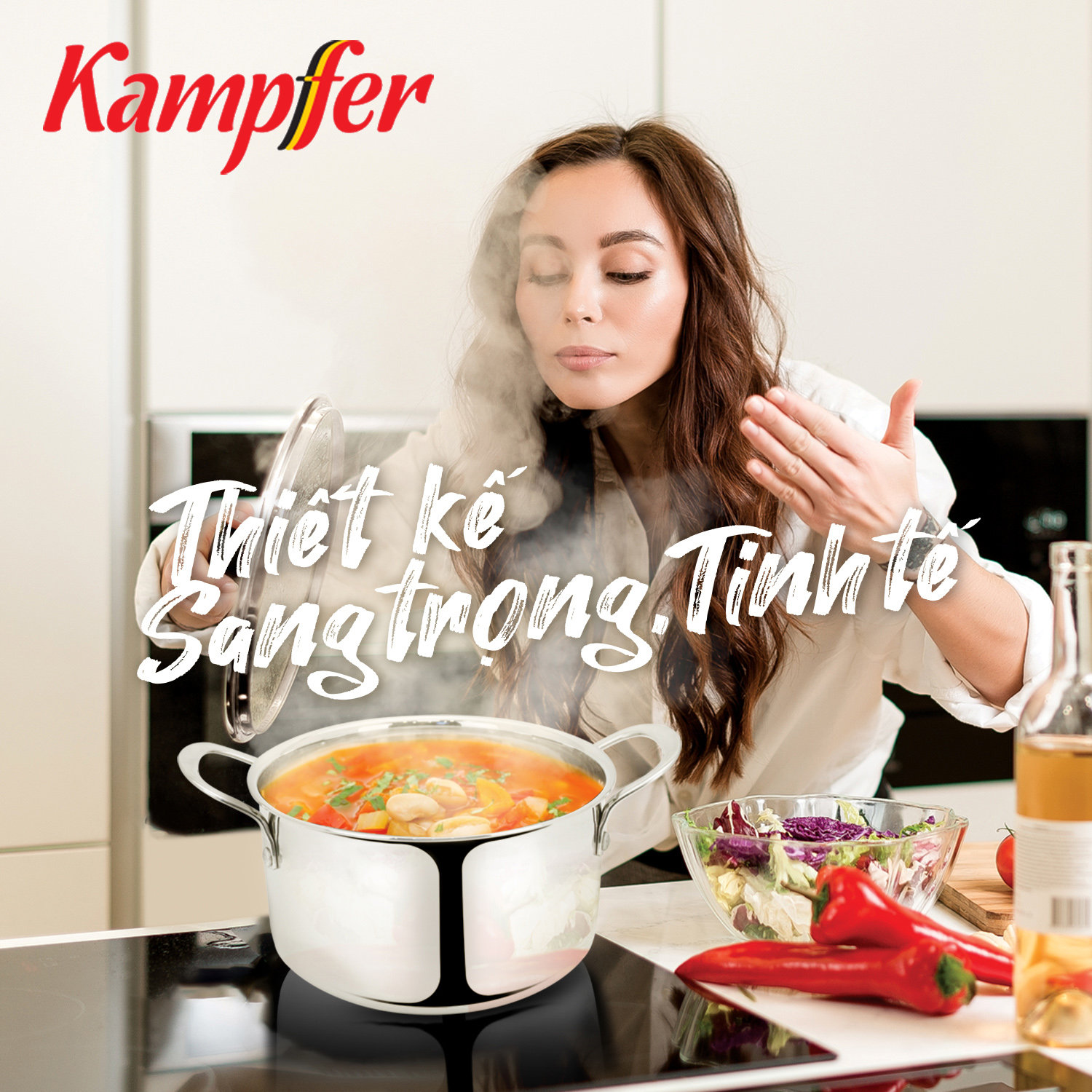 Nhờ có cấu tạo 3 lớp liền thân mà bộ nồi inox Kalpen Kampfer mang lại hiệu suất nấu nướng tối đa, thực phẩm chín nhanh, chín đều, giữ được trọn vẹn vitamin, khoáng chất và màu sắc tươi ngon của thực phẩm.