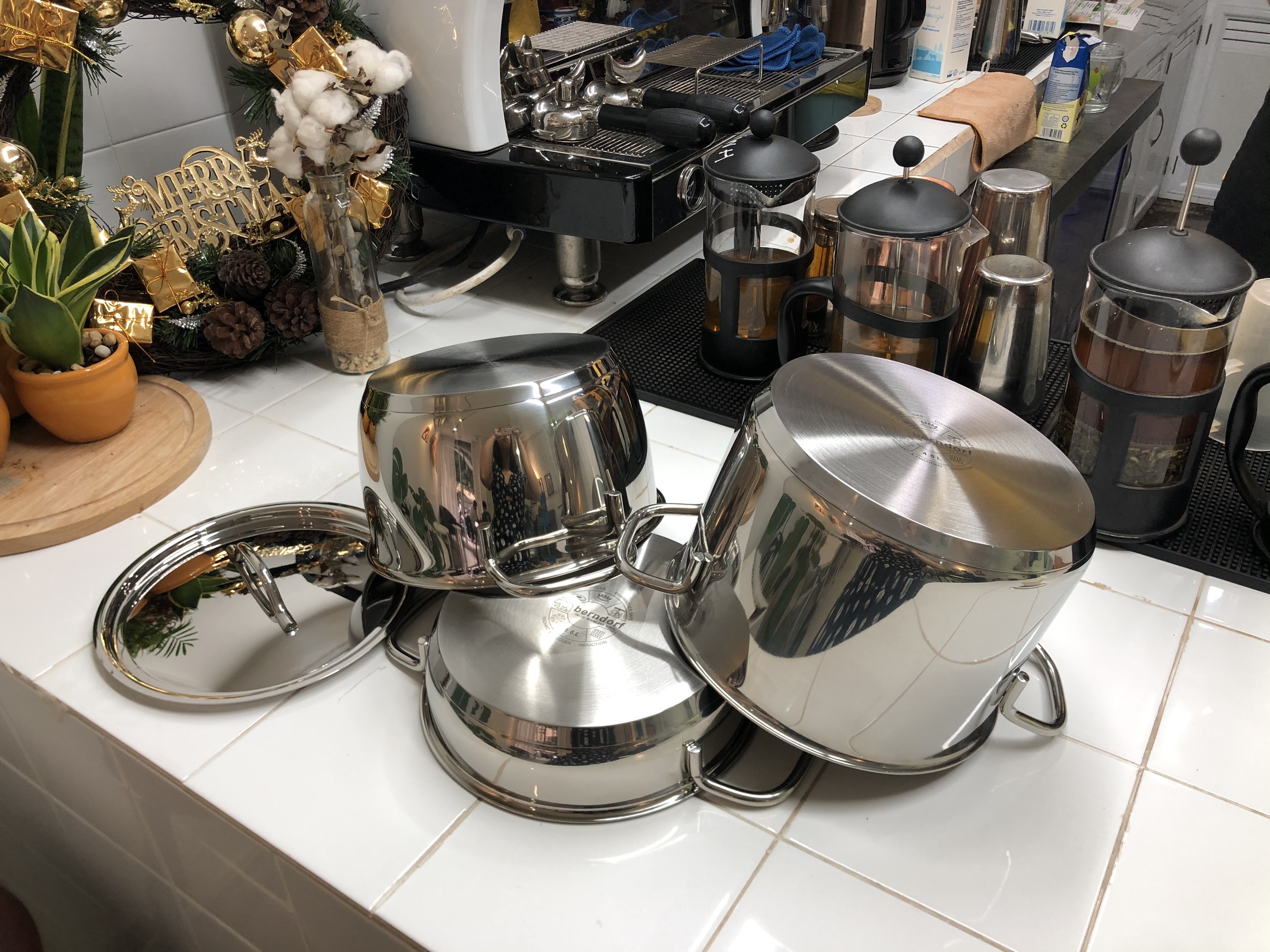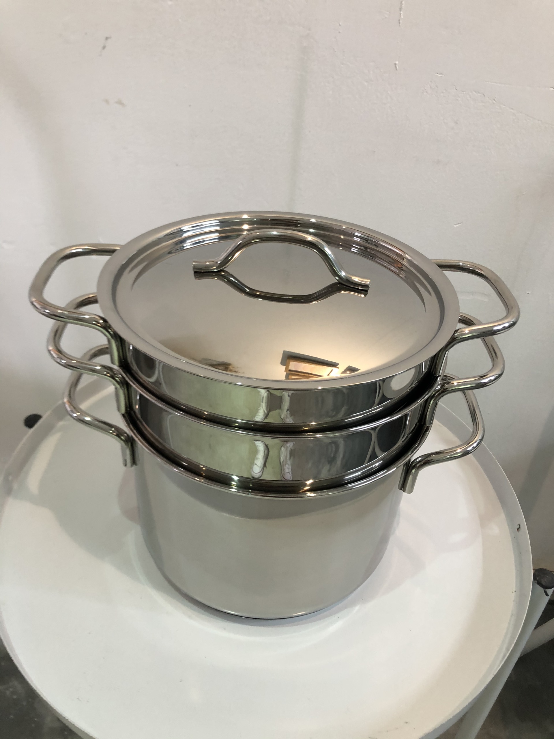 Bộ ba nồi có nắp dành cho những người muốn tiết kiệm diện tích và mua với giá rẻ. Mỗi nồi được thiết kế để dễ xếp và kết hợp. Có một nắp trong bộ cho 3 nồi , bạn có thể sử dụng cho mọi kích cỡ.