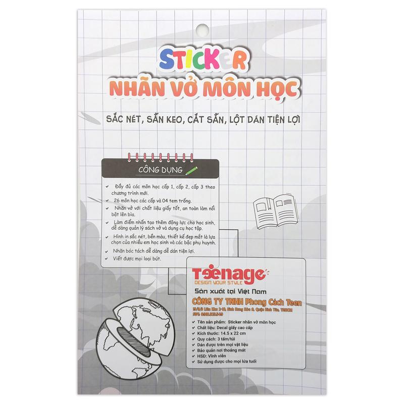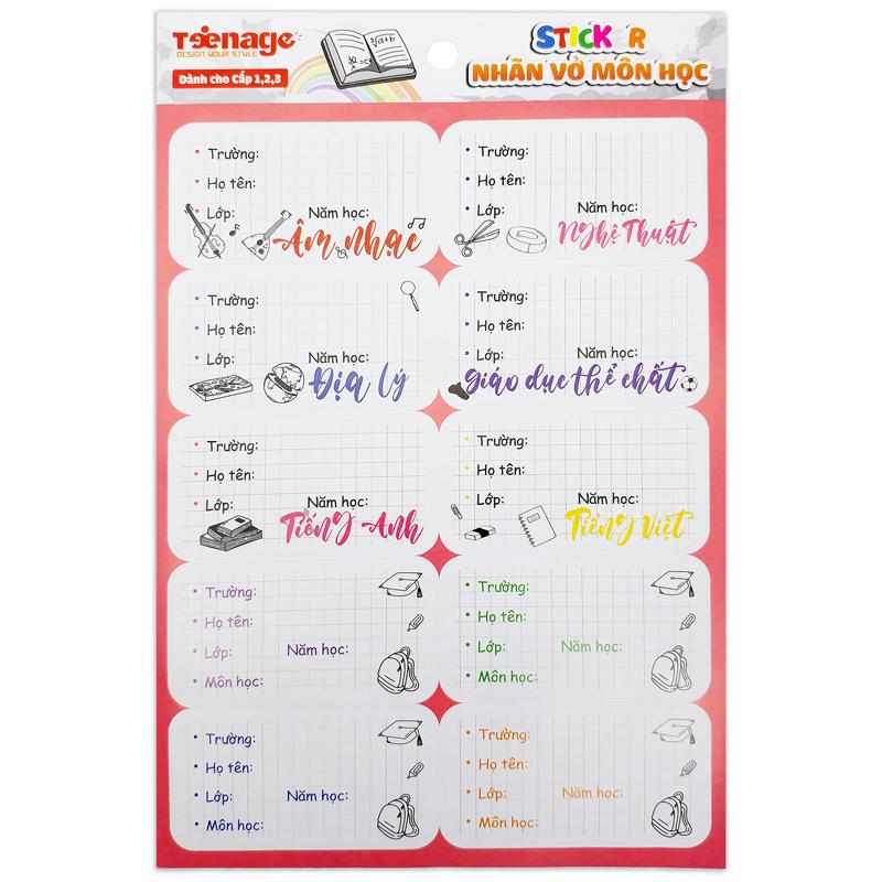 Mua tại TiktokBộ 3 Sticker Nhãn Vở Môn Học - Teenage NV-01