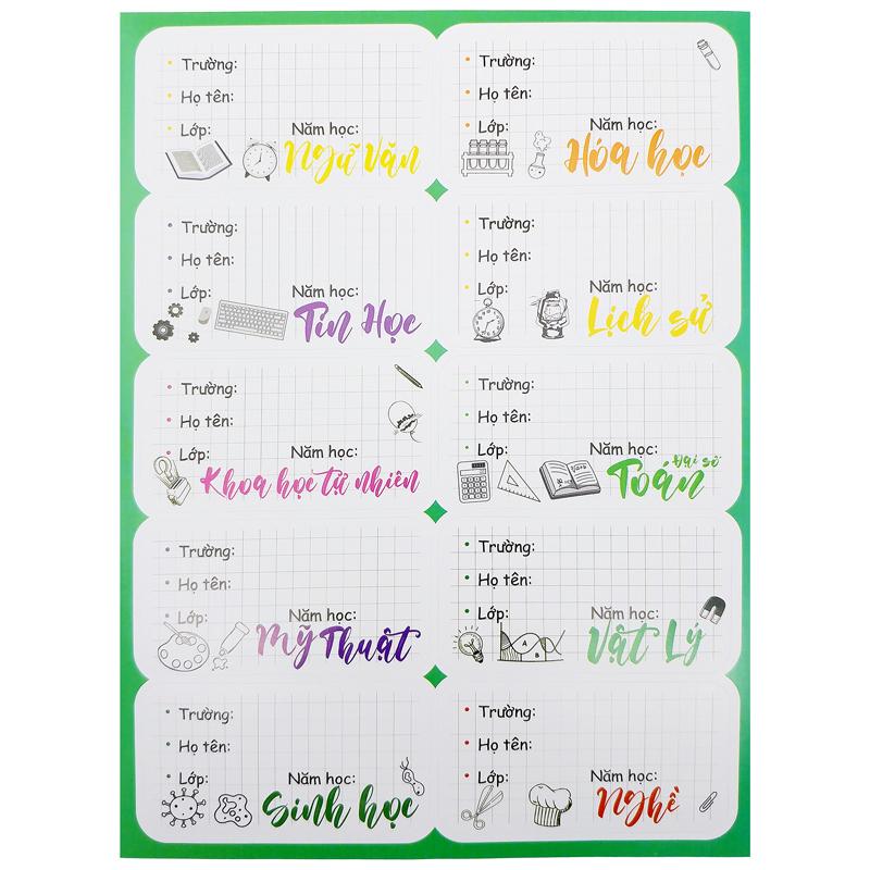 GoldReview | Nhãn Vở In Môn Học Sẵn Keo Dễ Dán