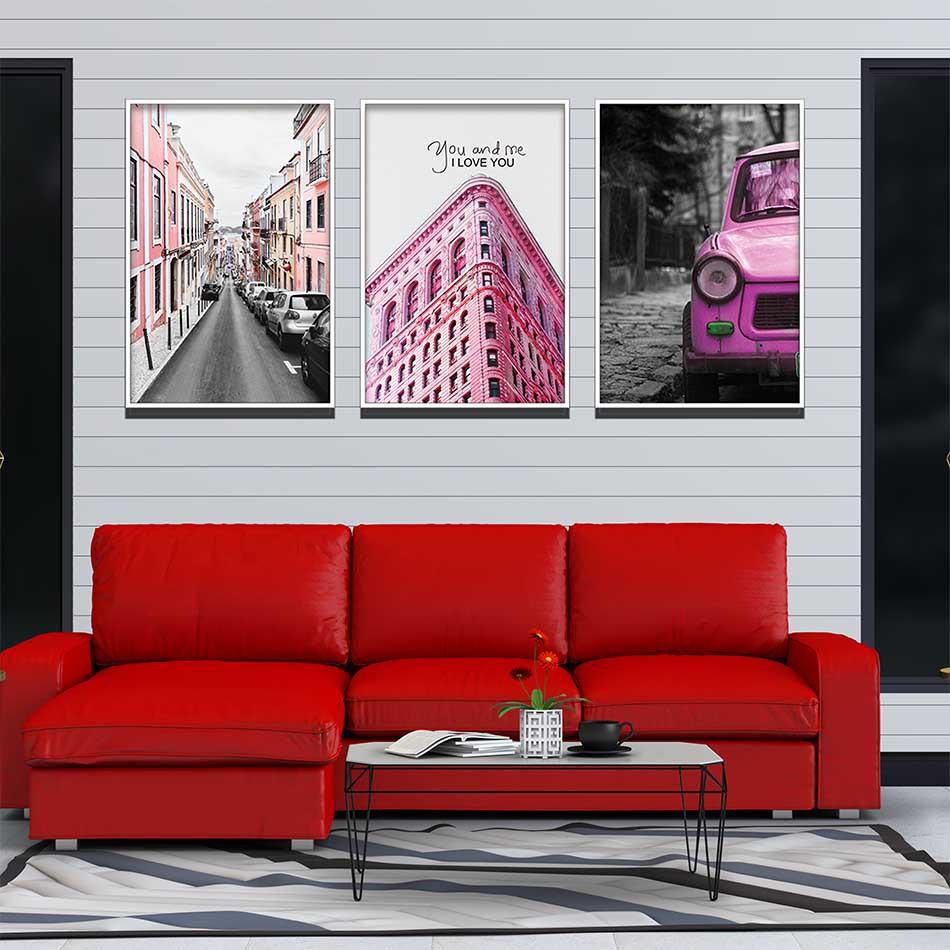 Bộ 3 tranh canvas treo tường Decor Đường phố và xe, tông hồng hiện đại – DC150Bộ 3 tranh canvas treo tường Decor Đường phố và xe, tông hồng hiện đại – DC150