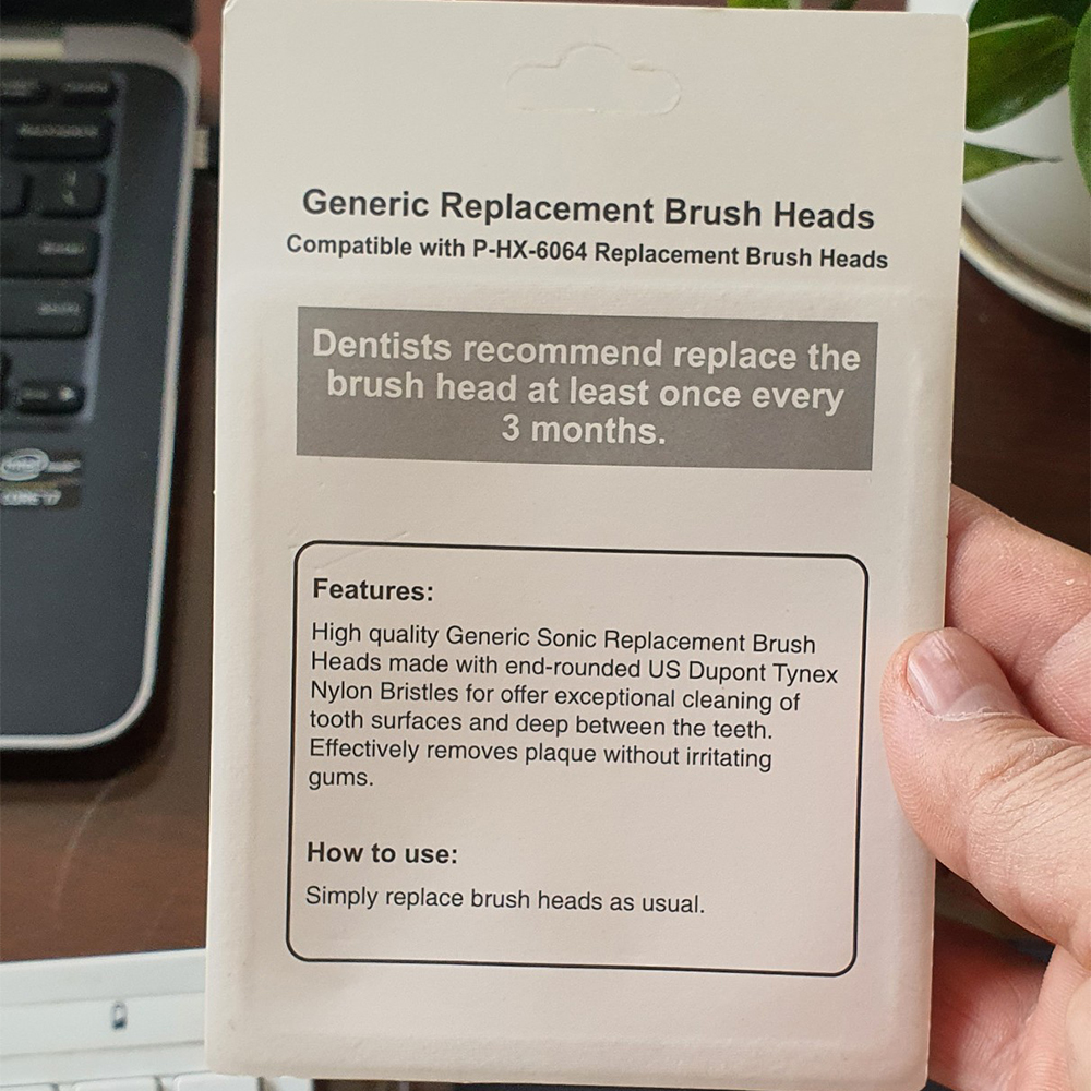 Mua tại TiktokBộ 4 đầu bàn chải đánh răng điện HX-6064 cho máy Philips Sonicare HX3, HX6, HX7, HX8, HX9, R, FlexCare +, FlexCare, HealthyWhite, HydroClean, EasyClean, DiamondClean Mô tả: Các bạn đều biết mọi đầu đánh răng khi sử dụng từ 3-6 tháng đều nên thay mới để đảm bảo vệ sinh và giữ cho máy được bền. Khi mua máy, Nhà SX chỉ trang bị 1 số đầu nhất định. Vậy cần mua thêm đầu thay thế để dự phòng và thay đổi định kỳ. Thông tin: