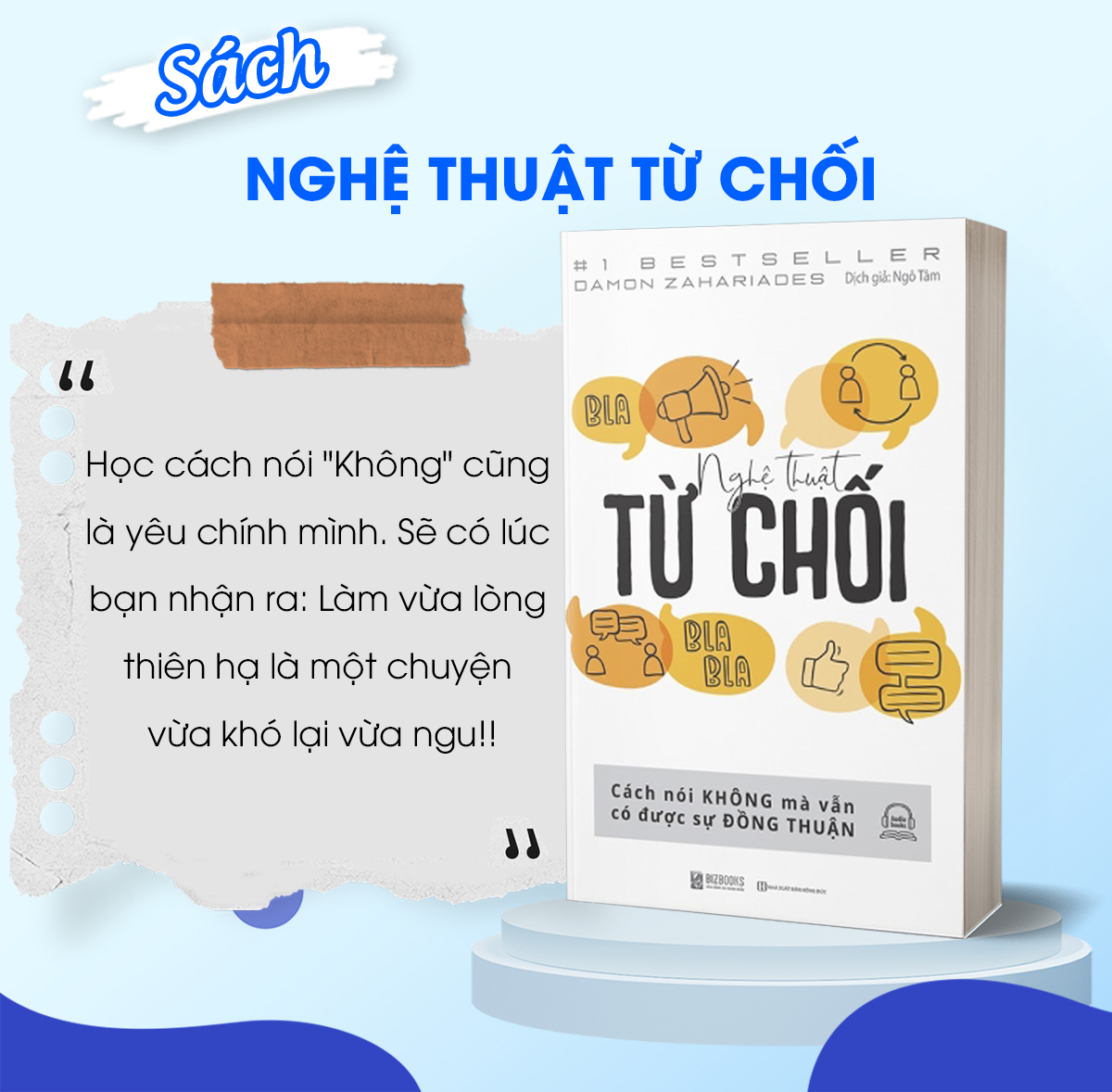 Bí quyết đưa ra lời Từ chối mà không làm tổn hại các mối quan hệ nằm “Nghệ Thuật Từ Chối – Cách Nói Không Mà Vẫn Có Được Đồng Thuận” giúp bạn tìm hiểu nguyên nhân và đưa ra cách từ chối “nhẹ nhàng”. Cuốn sách chia quy trình Từ chối thành những bước như- Chuẩn bị từ chối, đưa ra từ chối và hoàn tất từ chối – cuốn sách hướng dẫn bạn phương pháp nói Không hiệu quả, mạnh mẽ nhất, bạn có thể thực hiện ngay trong đời sống, công việc và các mối quan hệ.
