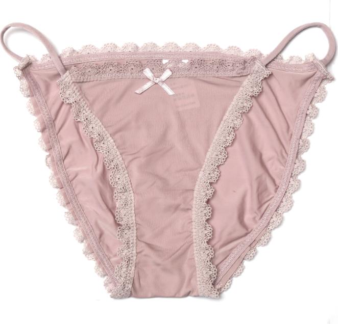 - Quần có viền ren, hai bên là dây, giữa cạp quần có nơ trang trí