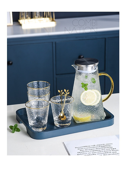 Bộ bình 6 cốc thủy tinh chịu nhiệt mạ vàng cao cấp