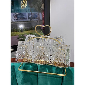 ✨Bộ 6 cốc thủy tinh uống nước hoặc rượu tây kèm giá úp cốc hình tim