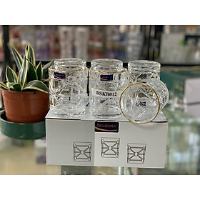 Hộp 6 ly thủy tinh DELI KB036-1R 218ml cao cấp - Miệng ly mạ vàng, Uống nước, trà, cà phê, rượu vang