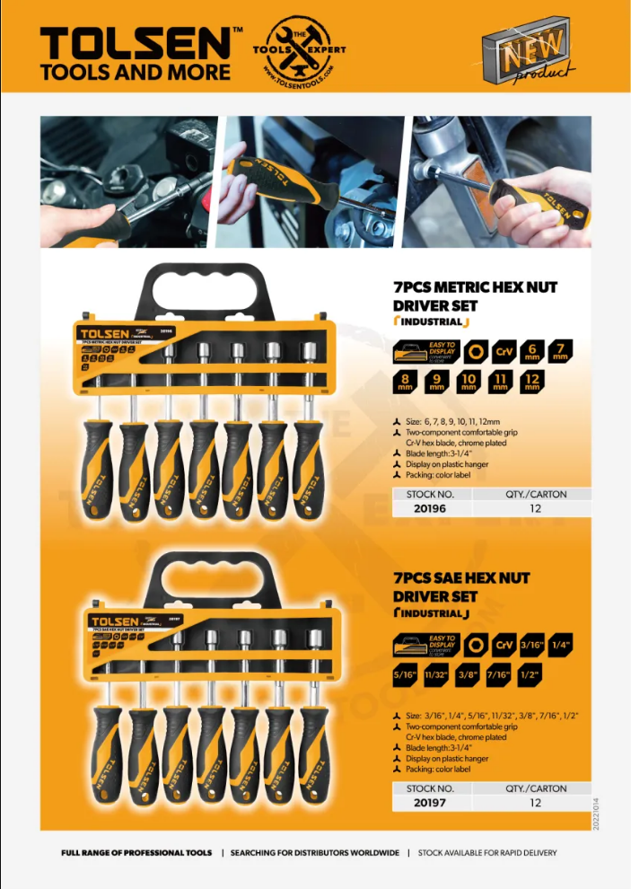 Dụng cụ TOLSEN chuyên cung cấp các mặt hàng như: dụng cụ cơ khí, vật dụng PPE, dụng cụ chuyên dụng cho ngành điện, vật dụng đo lường, túi đựng chuyên dụ Các sản phẩm của Tolsen đều trải qua quá trình nghiên cứu kỹ lưỡng trước khi đưa vào sản xuất, đáp ứng đầy đủ các tiêu chuẩn về mặt vật liệu, thiết kế, tính ứng dụng, giá cả. Tiếp đó, đội ngũ chuyên viên sẽ tiến hành kiểm tra nghiêm ngặt chất lượng sản phẩm đầu ra về các yếu tố như: độ cứng, vật liệu cách nhiệt, mẫu mã sản phẩm, khả năng cắ trước khi đưa vào thị trường, đặc biệt là quá trình thử nghiệm về độ chống gỉ cao. Công nghệ sản xuất hiện đại và được cải tiến liên tục nhằm đem đến cho khách hàng của Tolsen những mặt hàng dụng cụ cầm tay đạt chuẩn, cải thiện chất lượng công việc một cách tối ưu. Dụng cụ TOLSEN ngày càng cung cấp nhiều sản phẩm đa dạng và phong phú hơn.
