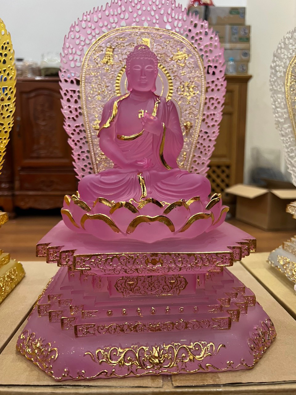 Tượng Phật Bà Quan Âm Mới Đá Lưu Ly Hồng Để Trong Xe Hơi hoặc trên bàn cao 12cm đk 7cm đế 5cm hợp Anh Chị Mệnh Hỏa mệnh Thổ ạ *** Tượng Phật Bà
