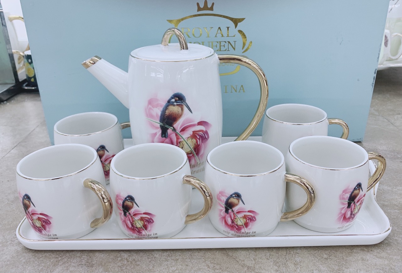 Bộ ấm chén kèm khay sứ pha trà cà phê siêu sang cho ngày Tết- Bộ cốc chén pha trà cà phê kèm khay bằng sứ
