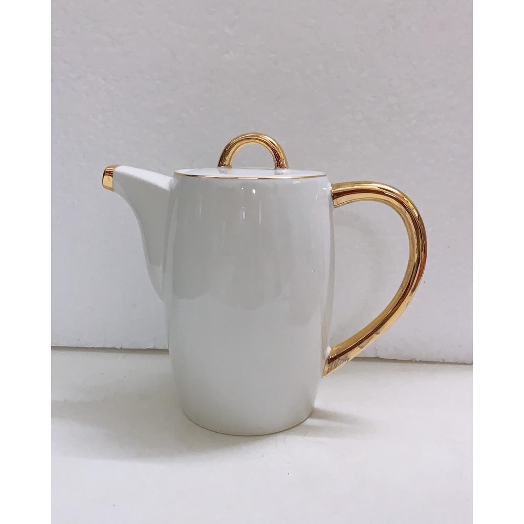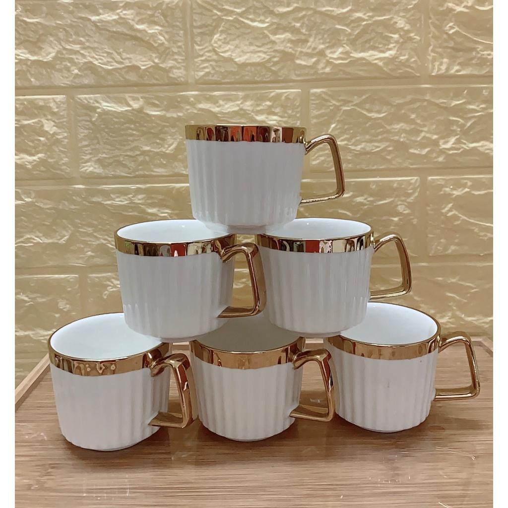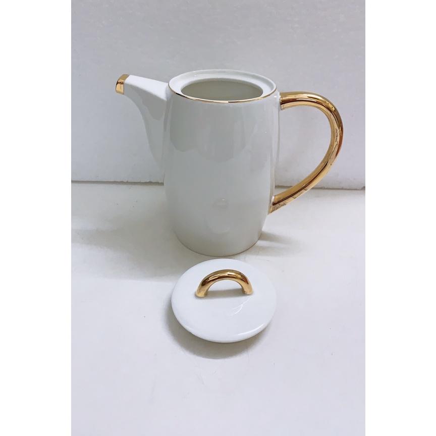 Bộ ấm chén Bát Tràng men trắng viền vàng kim dáng phú quý kèm hộp làm quà tặng sang trọng Với chất men trắng tinh khôi không tỳ vết, từ chén, đĩa, ấm, nắp