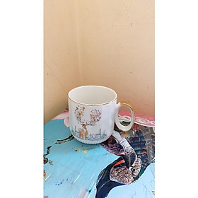 Bộ ấm chén sứ, bộ tách pha trà cà phê cao cấp màu xanh cổ vịt họa tiết hươu vàng