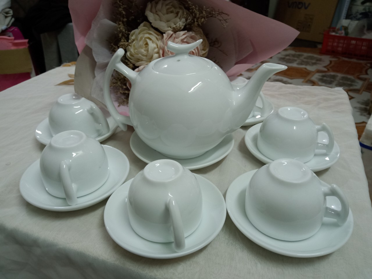 Một bộ sản phẩm bao gồm: 01 ấm, 01 đĩa ấm, 06 chén và 06 đĩa chén. Bộ sản phẩm được làm từ chất liệu gốm cao cấp, bảo đảm an toàn vệ sinh