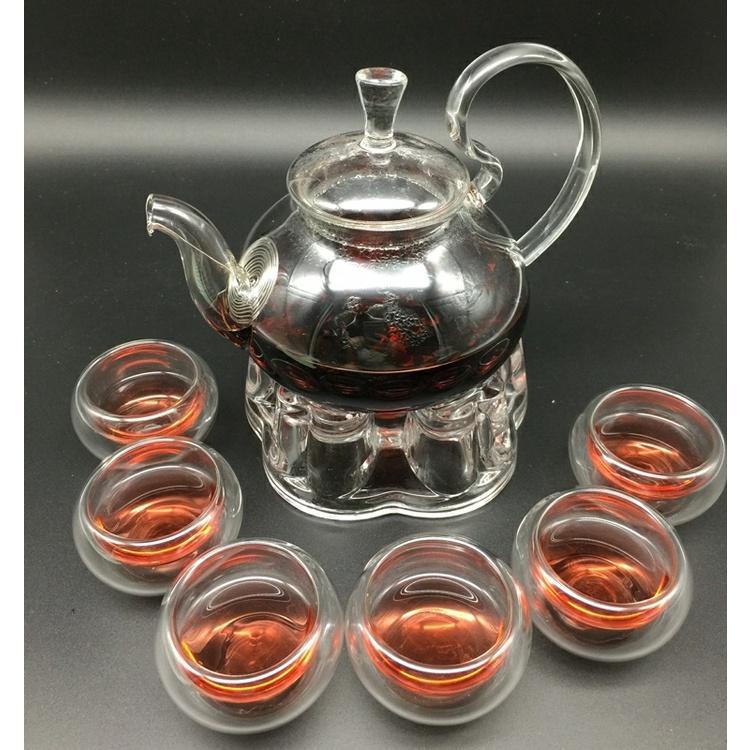 ✨Bộ ấm chén thủy tinh 600ml tay vồng kèm bếp nến